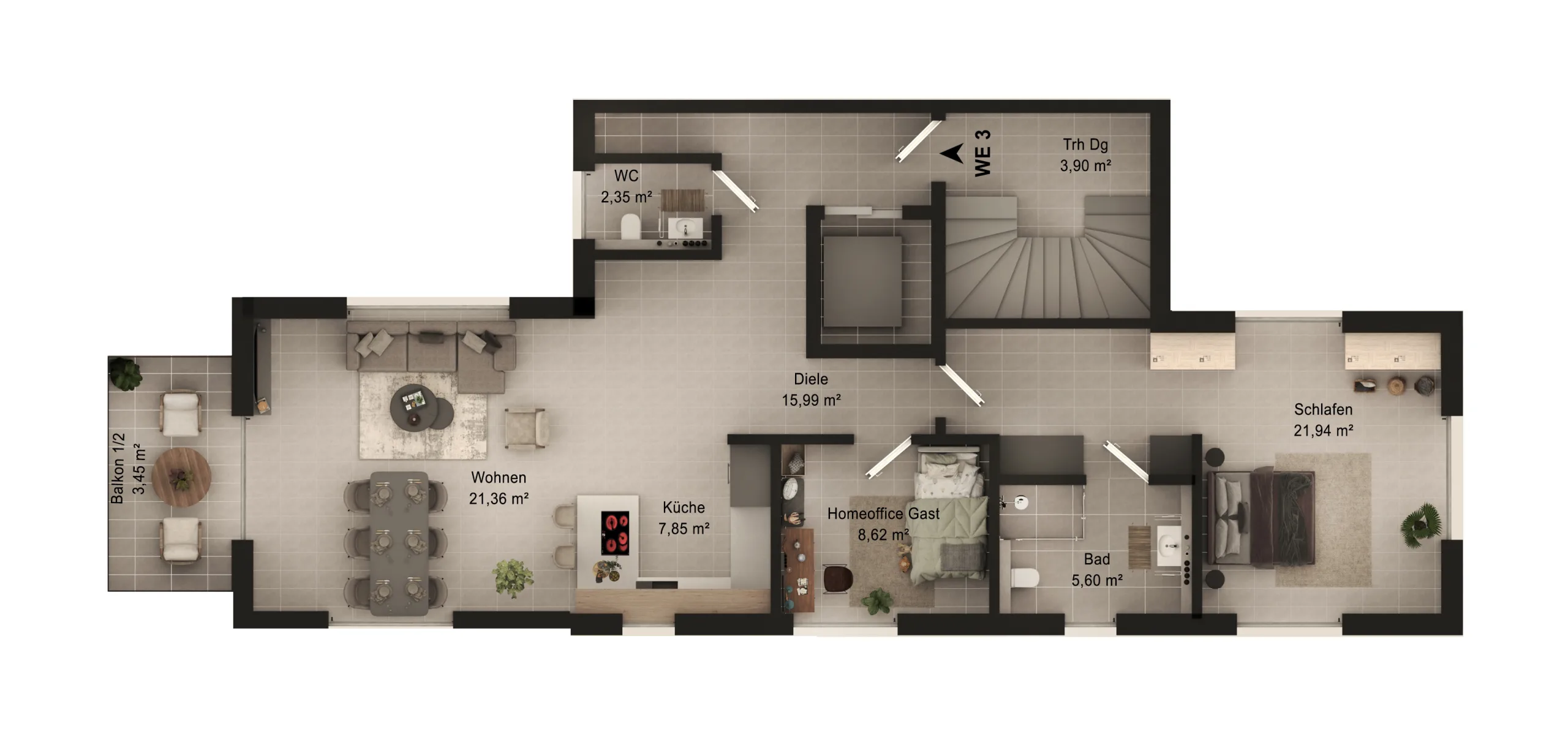 In einem noch zu errichtenden, hochwertigen 3 Familienhaus entsteht eine exklusive 3-Zimmer- Dachgeschosswohnung, die modernen Wohnkomfort, Barrierefreiheit und Energieeffizienz vereint.