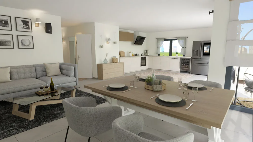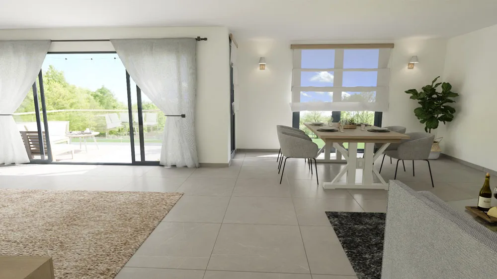 Das offen gestaltete Wohn- und Esszimmer mit offener Küche bildet den Mittelpunkt der Wohnung. Große Fensterflächen sorgen für viel Tageslicht und schaffen eine angenehme Verbindung zur Natur. Von hier aus gelangen Sie direkt auf den Balkon, der sich harmonisch in die grüne Hanglage einfügt. Der Ausblick ins Grüne und die ruhige Umgebung machen ihn zum idealen Ort für erholsame Stunden, gesellige Abende oder einfach zum Entspannen im Freien.