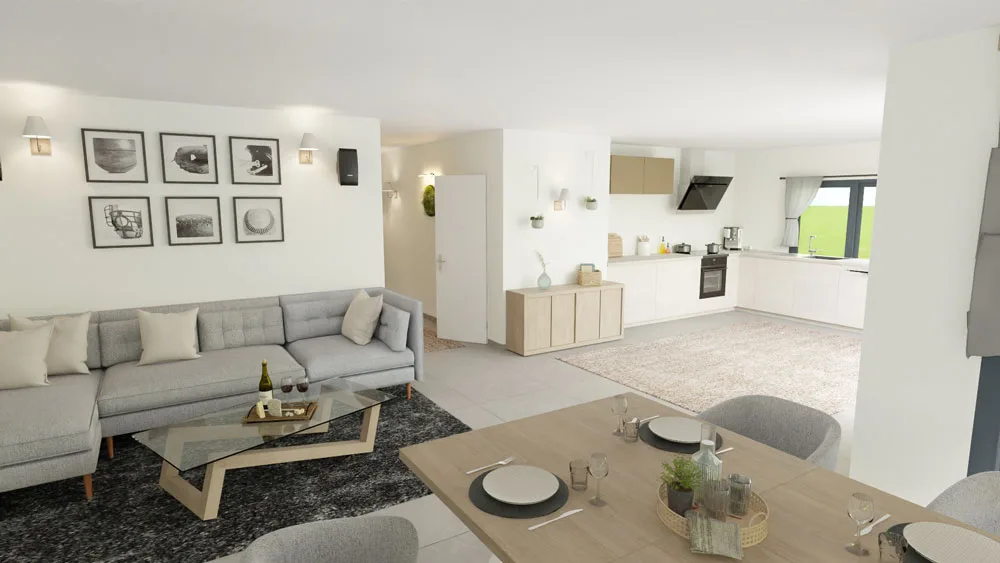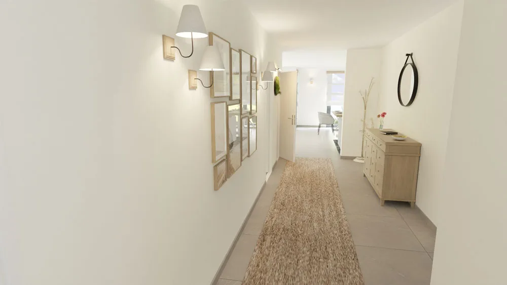 Zur hochwertigen Ausstattung der Wohnung gehören dreifach verglaste Fenster mit elektrischen Rollläden, moderne Haustechnik, stilvolle Bodenbeläge sowie fertig ausgeführte Malerarbeiten. Alle Bau- und Erschließungskosten sind bereits im Kaufpreis enthalten.
