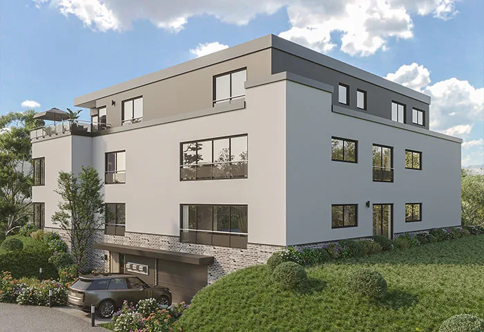 In ruhiger und grüner Hanglage von Bonn Bad Godesberg entsteht ein hochwertiges Mehrfamilienhaus mit nur 6 Wohneinheiten in massiver Bauweise, energieeffizient nach dem KfW 40 Standard. Im Erdgeschoss erwartet Sie eine stilvolle, barrierefreie 2 Zimmer Wohnung mit großzügiger Terrasse und zeitgemäßem Wohnkomfort.