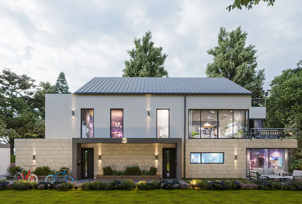 n ruhiger und bevorzugter Lage von Bad Honnef Rommersdorf entsteht ein exklusives Zweifamilienhaus in massiver Bauweise nach modernstem KfW 55 Standard. Die angebotene Maisonettewohnung ist barrierefrei und verfügt über einen eigenen Eingang. Sie bietet den besonderen Charakter eines Hauses im Haus und vereint außergewöhnliche Architektur mit höchstem Wohnkomfort.