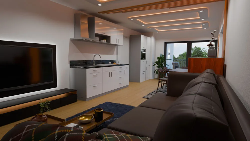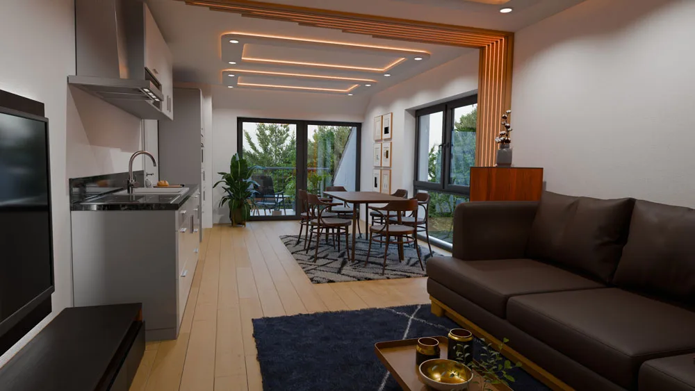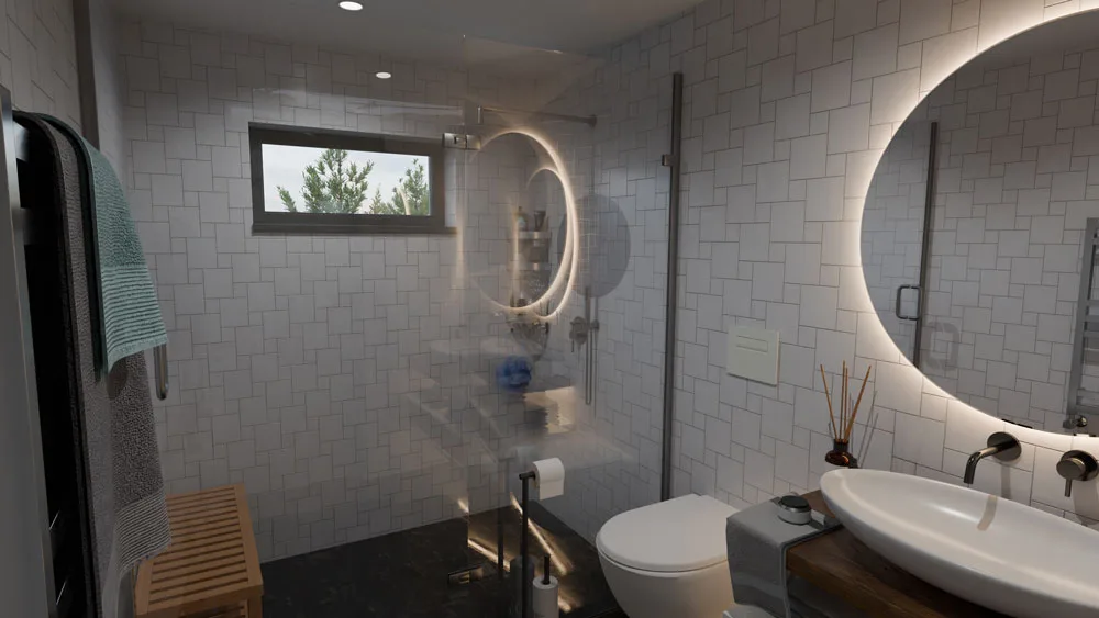Die sichtbarsten Merkmale, dieses herausragenden Konzeptes sind nicht nur die Barrierefreiheit im gesamten Haus, die Immobilie wird technisch mit unschlagbaren Highlights ausgestattet. Mit einem großzügigen Wohn – Essbereich mit offener Küche und einem eleganten Schlafzimmer ist sie perfekt für anspruchsvolle Singles oder Paare. Hochwertige Fliesen sorgen für eine edle Atmosphäre, während die Fußbodenheizung für angenehme Wärme sorgt. Das Badezimmer ist modern gestaltet und bietet höchsten Komfort.
